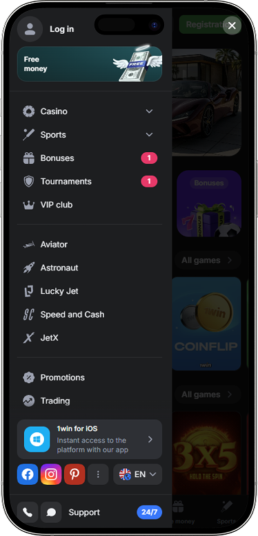 The 1win mobile site offers the complete functionality of betting and gaming, which means no app installation is required. The mobile site features are: